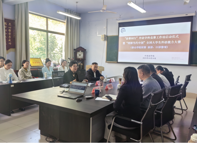 10月14日下午,外国语学院举行外语学科竞赛工作坊启动仪式暨“理解当代中国”全国大学生外语能力大赛英语组演讲和口译校级决赛。活动由外国语学院主要负责人主持,学校党委委员、副校长张守凤教授、教务处主要负责人受邀出席,学院领导班子成员、骨干教师及参赛学生共同参会。